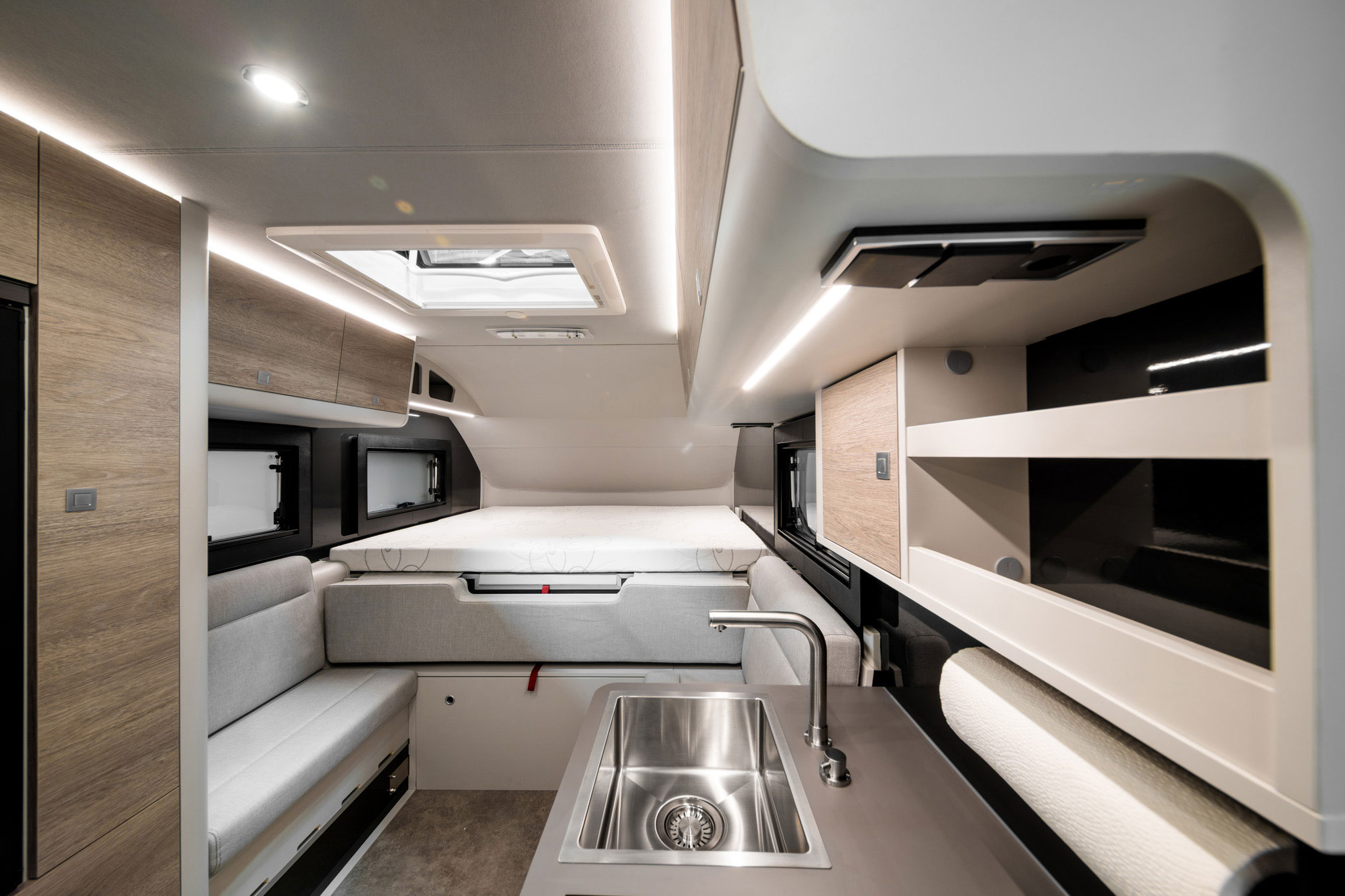 Pickup Cabin Camper VanPodlunšek offers two ways to travel — a tailored camper van and an ultra-light pickup cabin — both built around thoughtful layouts, practical storage, and a surprisingly spacious feel. Every detail is designed to make daily life on the road simple and intuitive, with durable materials chosen for long-term use.